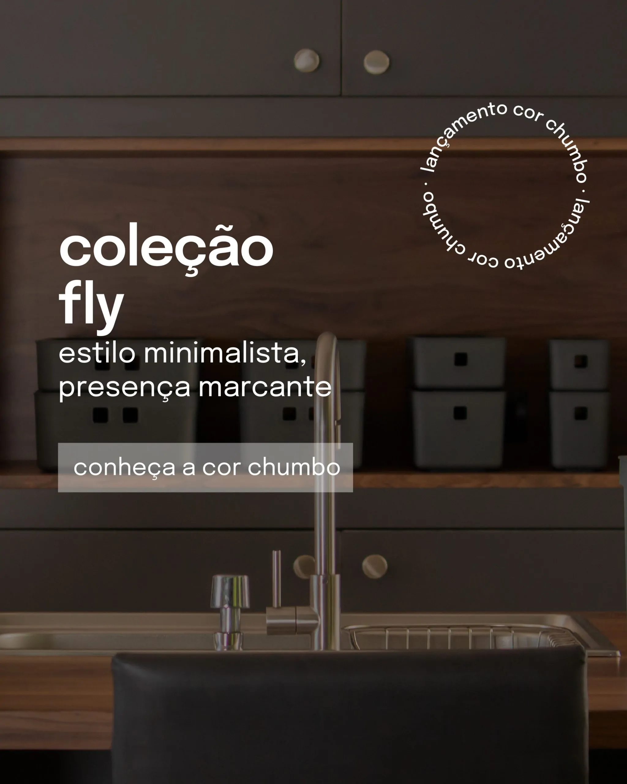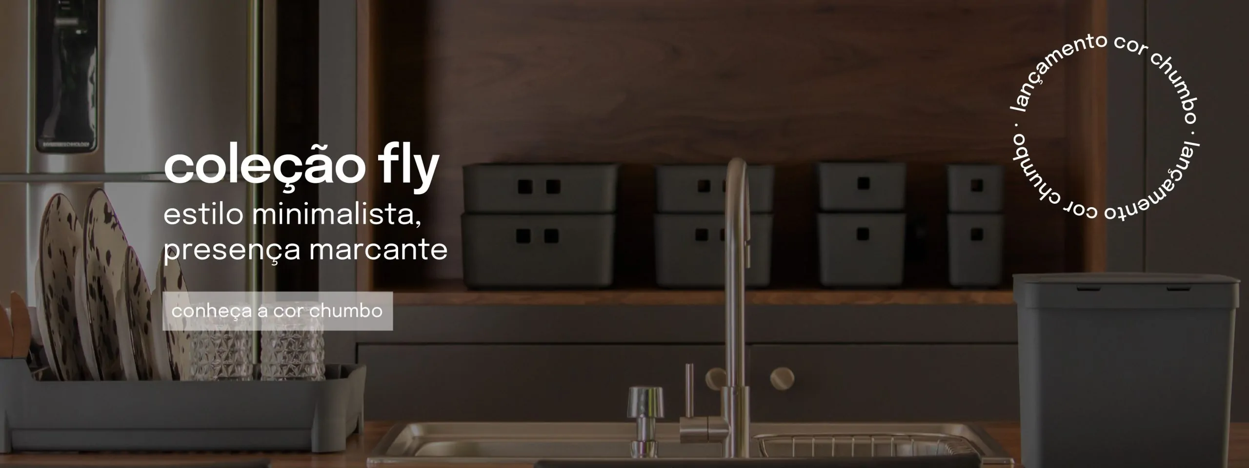 Versáteis e disponíveis em diversos tamanhos e cores, a Coleção Fly é perfeita para quem busca mais organização sem abrir mão do design minimalista. Saiba mais e conheça toda a linha de caixas, cestos, baldes, bacias, escorredores e lixeiras.